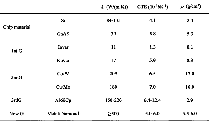 传统的Invar、Kovar合金热导率低,难以满足高功率设备的散热需求,钨铜、钼铜合金虽然具有较低的热膨胀系数,但同样存在热导率不足、密度高的短板,而金属基复合材料能够将金属良好的导热性与增强体的低膨胀系数结合起来,且材料性能具有可调控性,已成为当前热管理领域的主流应用材料。