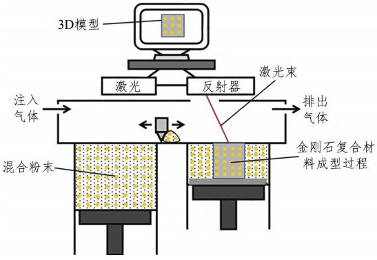 增材制造(AM),俗称3D打印技术,是一种以粉末、液体、丝材等为原料,基于零件的三维模型,逐点-逐线-逐层堆积的材料成形技术。目前报道的用于制备金刚石/金属复合材料的增材制造技术主要基于粉末原料,包括激光选区熔化、激光熔覆、冷喷涂等,为金刚石增强金属基复合材料的制造和应用提供了新的机遇。